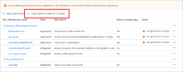 Click Grant admin consent to Contoso.