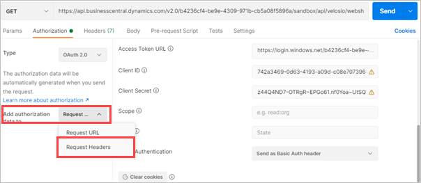Select Request Headers from the Add authorization data to drop-down list.