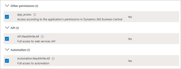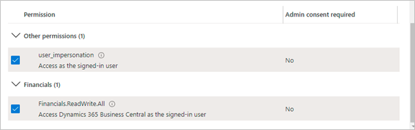 Select Business Central and click Delegated Permissions.