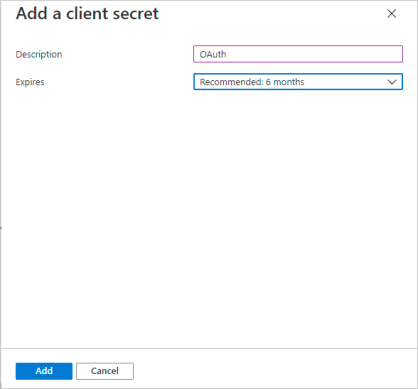Click Add to generate a client secret.