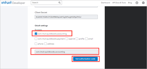 Check the box beside com.intuit.quickbooks.accounting.