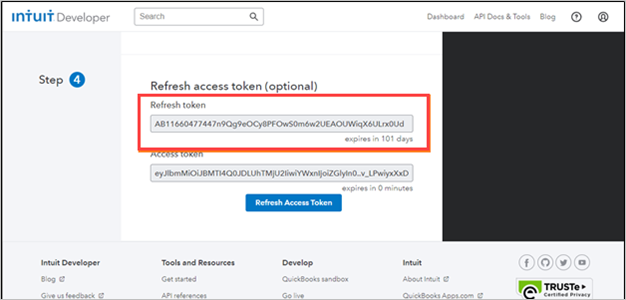 Scroll down and navigate to Step 4 to view the Refresh token and Access token.