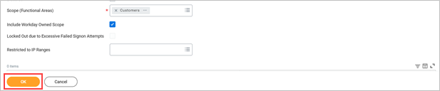 Click the Include Workday Owned Scope checkbox to provide access to the client with the core Workday domains that are not included in the functional areas.
