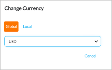 This option is used to modify the monetary values of a report or dashboard into Global or Local currency.