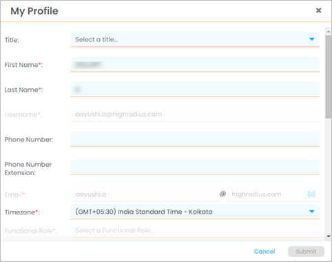 Hint You can customize the application to open in any specific tab by selecting the Default Tab from the drop-down list provided in the My Profile window. |